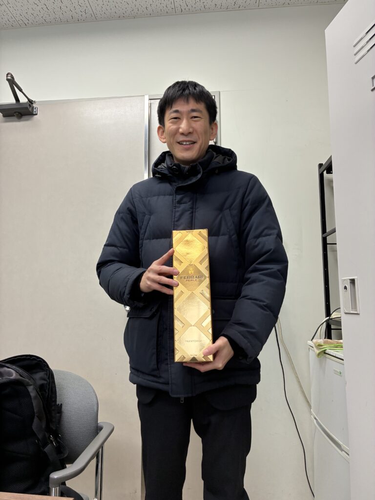 2011年度修了生,田畠さんがわざわざ来学してくださり,お祝いの品をいただきました。田畠さんの益々のご活躍を期待しています